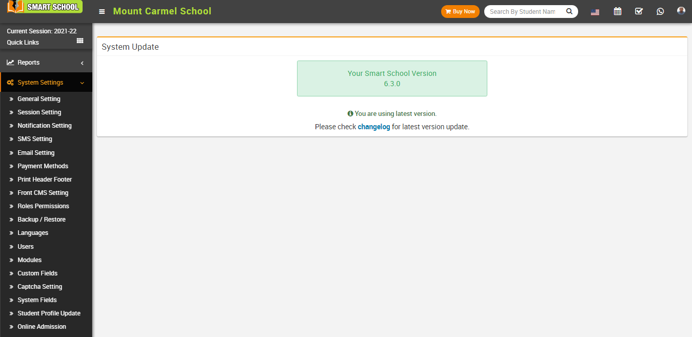 To check Smart School Version, login from superadmin panel and then go to System Settings > System Update link. Here you can see your current Smart School Version and also update to the newest version if available any.